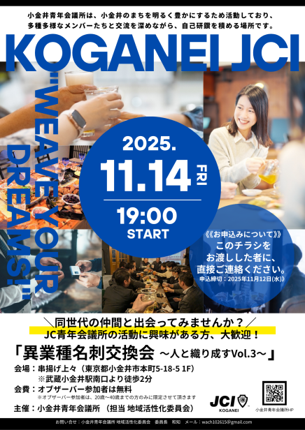 #異業種交流会 #小金井 #名刺交換会 #地域活性化 #JCI #KOGANEI #織り成す #新しいつながり
